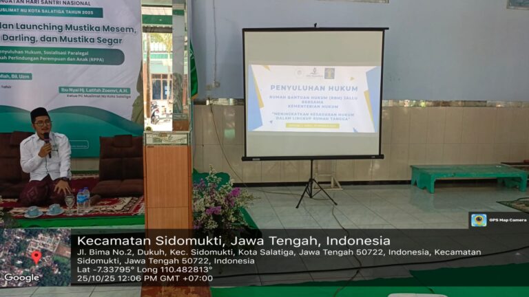 SALATIGA, 25 Oktober 2025 — Rumah Bantuan Hukum (RBH) Jallu Salatiga bersama Lembaga Penyuluhan dan Bantuan Hukum Nahdlatul Ulama (LPBHNU) Kota Salatiga menggelar penyuluhan hukum bertema “Kesadaran Hukum dalam Lingkungan Keluarga dan Penataan Paralegal Komunitas Muslimat NU Salatiga” di Aula…